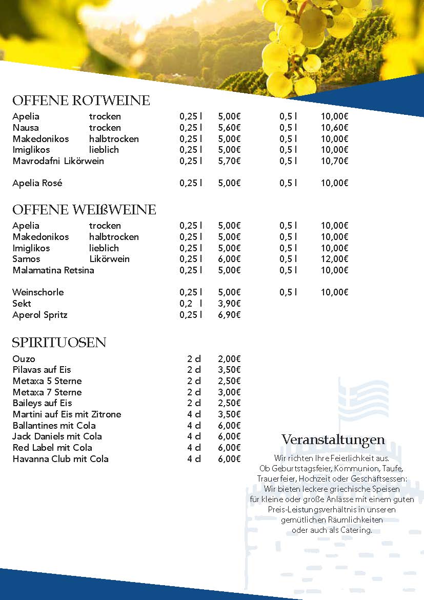 Restaurant Omiros Menu